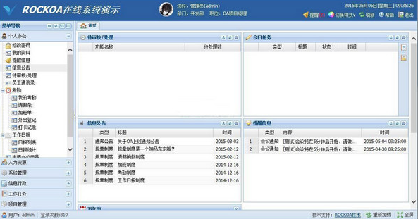 ROCKOA是一款非常适合中小型企业协同办公的软件,融合了长期从事管理软件开发的丰富经验与先进技术,该系统采用领先的B/S(浏览器/服务器)操作方式,使得网络办公不受地域限制。
