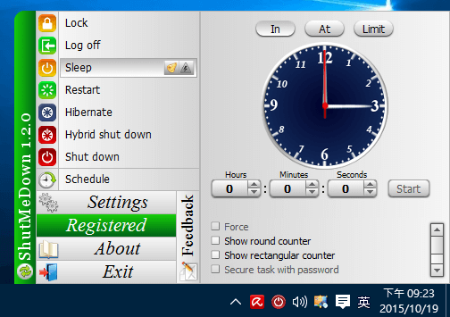 定时关机软件Shut Me Down1.2.0是一个简单的应用程序,这将帮助您自动在您的计算机上常见的系统任务,如关闭,重新启动,休眠等。它允许你创建自动定时器,使生活更轻松。现在,您可以设置关闭在特定的时间,看到的图形指标剩余时间。