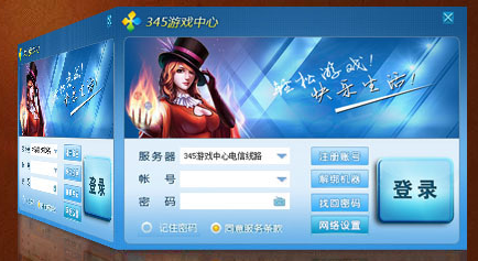 安装成功后,会自动弹出改下登陆框,点击右下角的“申请帐号”按钮,进行注册;注册成功后,就直接进入平台了;下次再进平台时,只是双击桌面游戏平台ICO图标,输入帐号及密码,点击登录即可进入平台游戏;