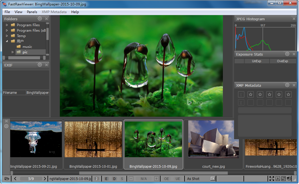支持嵌入式(内部)的JPEG的显示,也就是,它是内置的RAW缩略图,并且还显示的直方图JPEG文件。
