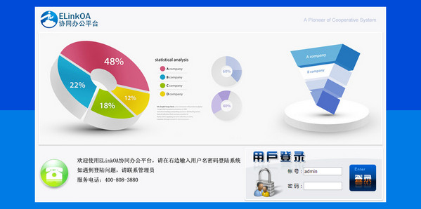 坤志OA(ELinkOA)软件是上海云全信息技术有限公司旗下主打产品之一,集成了包括内部流程审批、工作报告、文档管理、项目管理、协同任务、统计报表、电子邮件、通知公告、靠谱朗驰娱乐体育、靠谱朗驰娱乐体育、综合行政、电话会议、通讯录、手机短信、常用网址、万年历、靠谱朗驰娱乐体育自定义、OA即时通讯、手写签章、电子表单、自定义流程设计等极具价值的实用办公功能模块。ElinkOA将OA系统针对不同客户群体分出四大版本,分别为免费版、标准版30、标准版60、中小企业版、高级企业版和定制版,以阶梯式功能满足不同客户需要,为客户提供更加完善合理的选择机会,是适合所有行业政府企事业单位的网络协同办公系统。