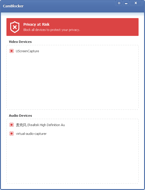 CamBlocker使您能够阻止所有的Web摄像头和麦克风。