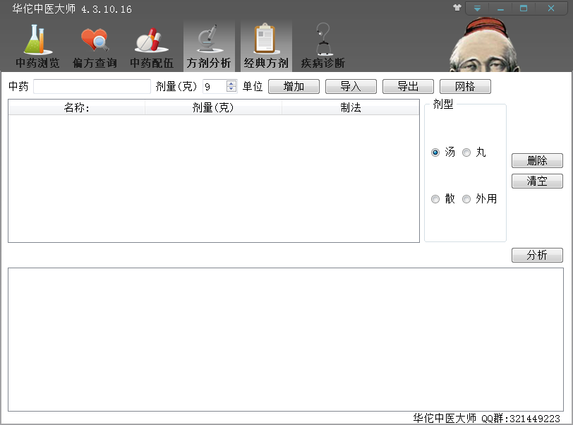 2. 专业的中医药方分析软件 – 内置专业的中医药方分析引擎,能够帮助专业技术人员,中医爱好者,中医各专业学生以及广大疾病患者朋友了解中医医师所开方剂信息,具体包含 功效,主治,禁忌等。