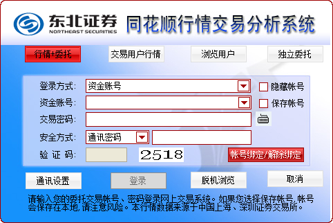 东北证券同花顺是北方证券出品的一款同花顺行情交易分析系统,提供了行情+委托、交易用户行情以及独立委托功能。用户登陆注意默认通讯密码为6个8。