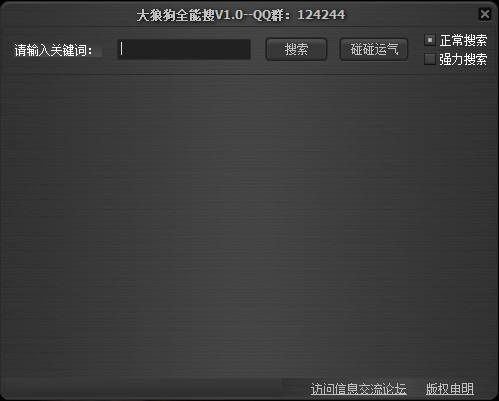 大狼狗全能搜是大狼狗强力搜索的加强版,这款资源搜索软件专为广大宅男宅女设计,可以帮助你搜索各种关键词,直链迅雷下载,当前版本拥有了之前几个先驱产品的所有功能,并且可以让用户自行选择搜索的强度,以获取不同类型的数据资源,良好的界面设计更方便用户及时体验极速搜索与下载。