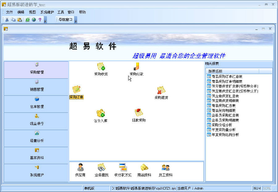 超易服装进销存软件是一款专业为服装、鞋帽、内衣店、皮具等行业量身订制的一款服装进销存管理系统。超易服装进销存软件专门针对服装行业特殊性而设计,支持尺寸,码数,单位换算,币种换算等。超易服装进销存软件是绿色软件,无插件,免安装,下载后解压即可使用!