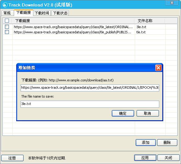 2、点击添加按钮,输入需要下载的链接,以及要保存的文件名(当文件名为空时,软件自动以下载链接最后一个“/”符号后的字符串作为文件名。