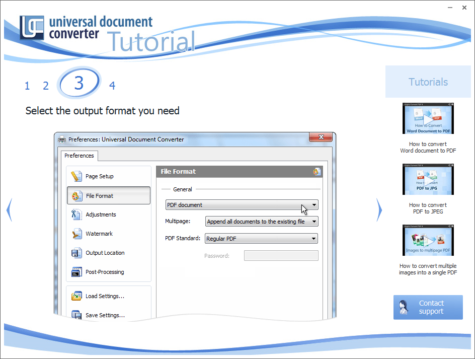 通用文档转换器是能够转换的文档从当前格式分为8个不同的输出格式。