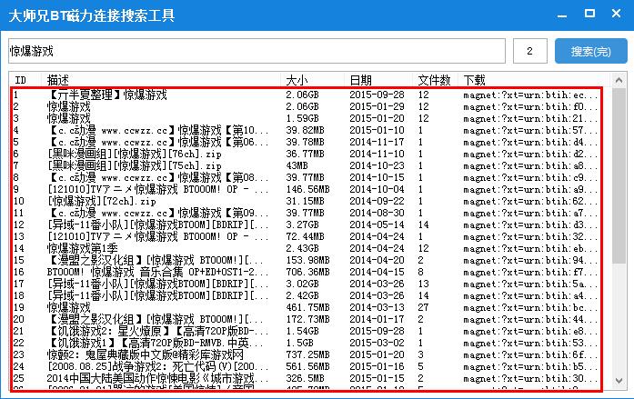 当前位置:靠谱朗驰娱乐体育网络工具网络共享 → 大师兄BT磁力链接搜索工具下载 1.0 绿色版