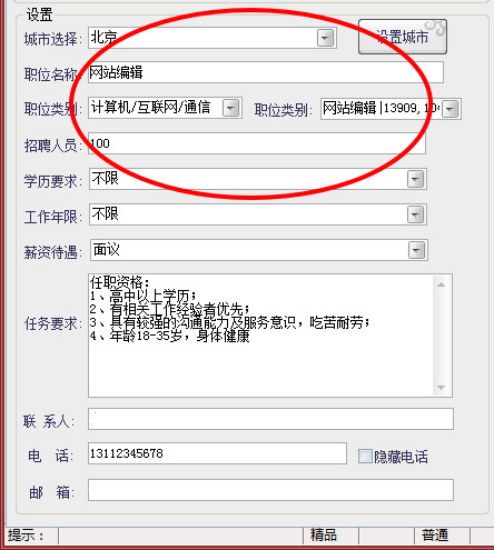 58同城VIP发送软件是专门针对58同城招聘网打造的招聘信息批量发布软件,这款软件可以帮助你在58同城发布所有职位的招聘信息,而且可以批量选择城市和地址等类型信息,软件非常简单易用,欢迎有需要的朋友免费下载体验!