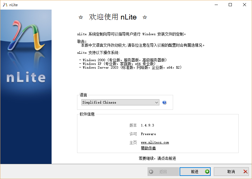 1. nLite的可以让你无需重新下载并安装每次你需要重新时间自定义安装的Windows XP,Windows 2000或Windows 2003上你可以从微软的服务包和修补程序直接集成到Windows分发的文件-install窗口。