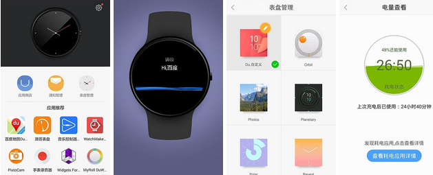 DuWear是专为智能手表而设计的系统。专门设计的用户界面,专门设计的交互方式,以及专门设计的各种应用,让佩戴智能手表的用户能更便捷的获取信息,找到所求。例如用语音完成搜索,获得消息提醒,用手表快速支付,在手表上查看步行导航,当然还有时间和日程管理、运动计步等贴心功能