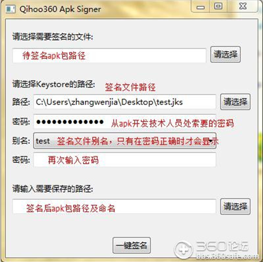 注意: 签名文件和密码可以找您应用的开发人员索要。