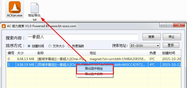 2.等到搜索完毕,双击资源能够出现“导出链接地址以及导出名称”.