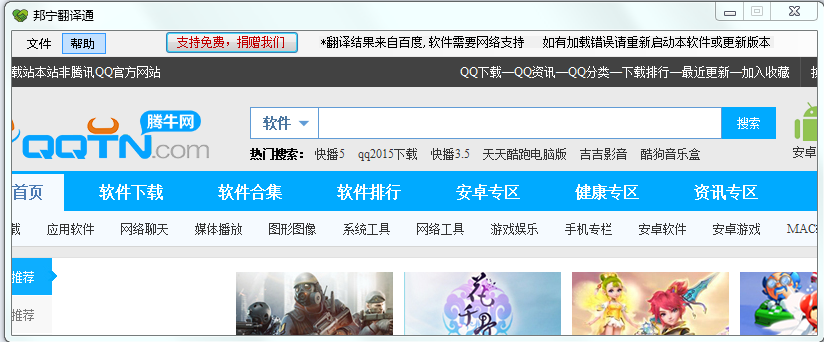邦宁翻译通是由邦宁网络制作的一款翻译工具,可翻译中文、英文、德文、阿拉伯文、法文、日语、汉语等十多种语言,供用户免费使用。