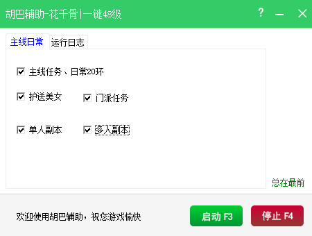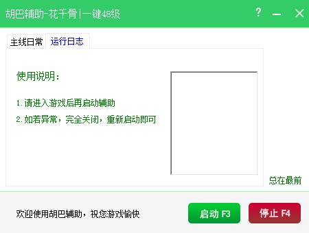 这款胡巴花千骨辅助工具暂且只提供了一款游戏脚本,可以一键帮助玩家做主线日常任务。如果辅助有异常,关闭重启即可。