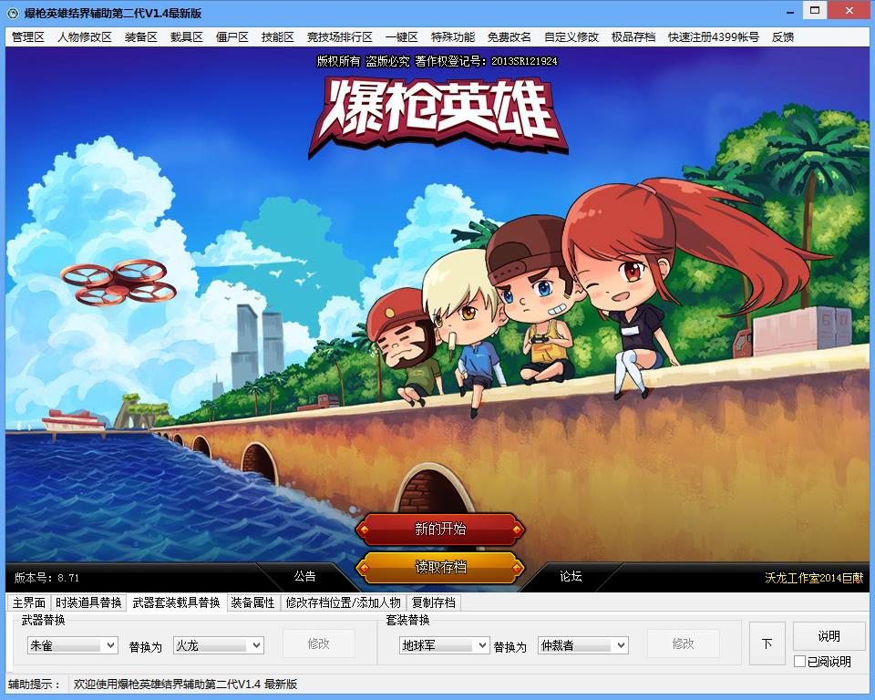 爆枪英雄结界辅助二代是针对原版辅助进行了功能升级,是2016最新的爆枪英雄辅助工具,这款辅助支持玩家在游戏中进行爆率修改、人物修改、银币技能石头、技能无冷却、装备属性爆满、E键秒杀、秒杀僵尸、自定义修改、免费改名等功能,喜欢玩爆枪英雄的朋友快来试试这款爆枪英雄结界辅助第二代吧。