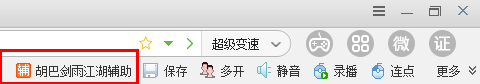 2.点击浏览器右上方的“胡巴剑雨江湖游戏辅助”