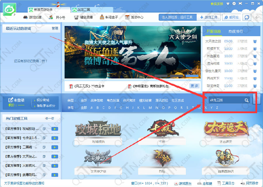 2、打开新浪页游助手,搜索战龙三国