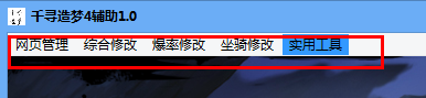 千寻造梦西游4辅助拥有四类功能,分别是网页管理、综合修改、爆率修改、坐骑修改、实用工具,是你最好用的造梦西游4游戏小帮手。