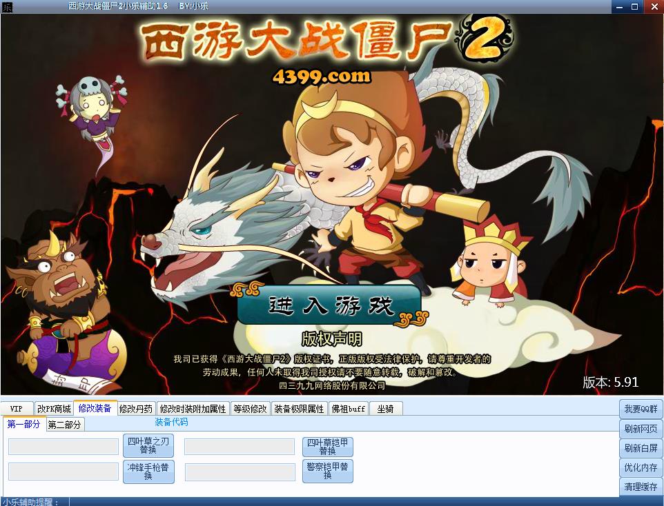 西游大战僵尸2小乐辅助是一款由玩家小乐专门为西游大战僵尸2制作的游戏辅助工具,这款小乐辅助支持一键修改PK商城、修改装备、修改等级、修改装备属性等等功能,喜欢玩西游大战僵尸2的玩家千万不要错过这款小乐辅助哦!