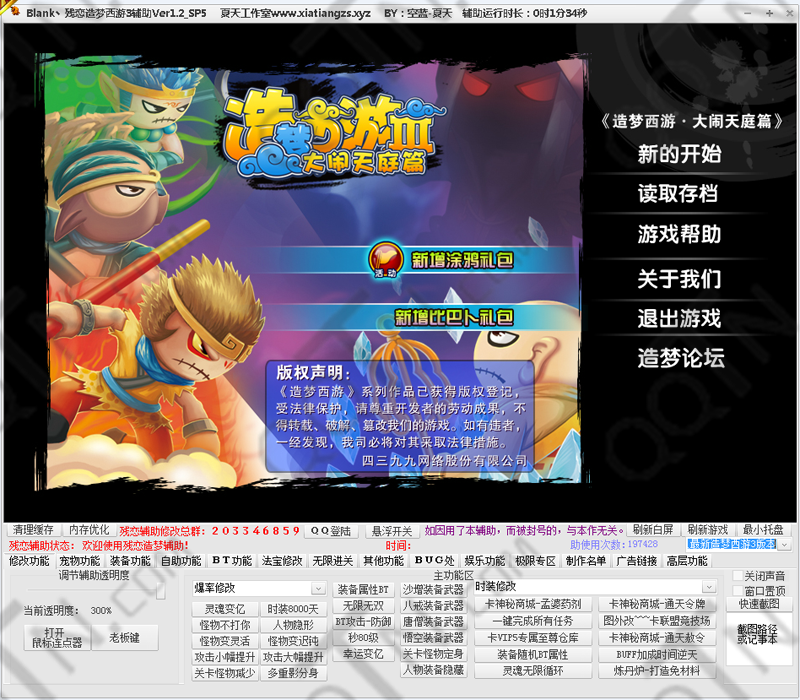 残恋造梦西游3辅助可以载入多个版本的造梦西游3游戏,此外还能载入造梦西游1、2、4等版本,并拥有超多超强大的游戏修改功能。