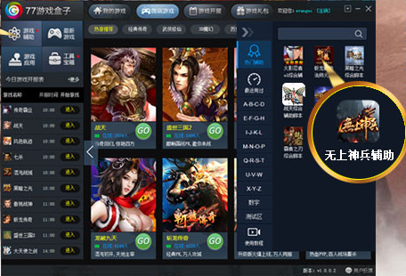 在使用无上神兵辅助之前请先下载77游戏盒子。
