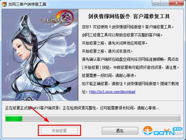 如不能正确修复,请前往《剑侠情缘网络版叁》官方微端下载地址