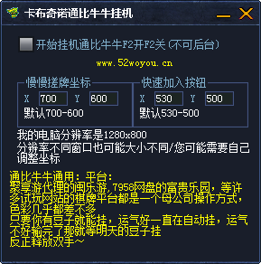 各大棋牌大厅上线了通比牛牛这款游戏,主要大家有足够的豆子,都可以使用卡布奇诺通比牛牛挂机工具,通用闽乐游、富贵乐园等平台。运行好的话可以一直自动挂机,不保证该软件可以帮助你赚取更多的豆豆。