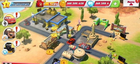 3、从传奇的闪电麦坤到豪华的超哥,玩家可以化身为20个汽车总动员中的角色,还可以升级并变换车身颜色!用油车水镇的车、改装车、间谍车,或是国际车来比赛!充满油味的个人化赛车!
