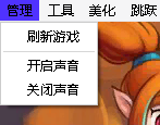 刷新游戏、开启声音、关闭声音