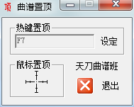 本曲谱置顶工具是由天刀曲谱班制作,玩家使用时按住软件中的鼠标置顶中的十字按钮,将其拖动到天刀曲谱班中,然后按下置顶热键F7即可。