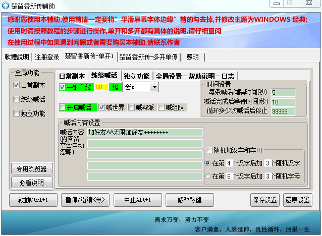 腾牛网提供的这款楚留香新传辅助,提供了日常副本、练级喊话以及独立功能,支持一键挂机坐等升级即可,非常适合刷小号。