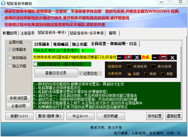 1、脚本的任何功能修改,都要点保存设置后,再启动才生效