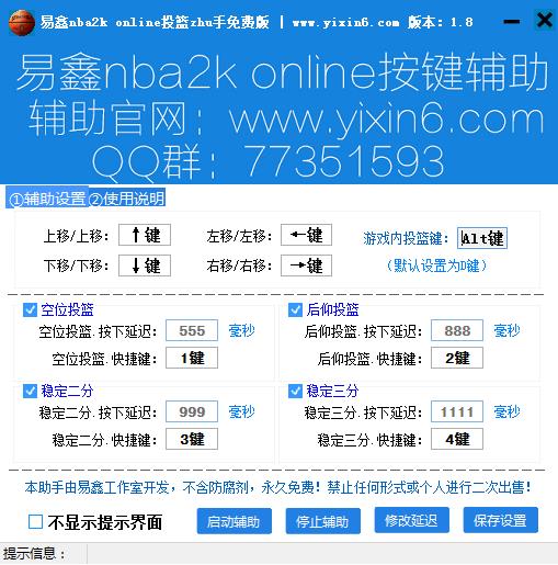 易鑫NBA2Kol投篮助手是一款由易鑫工作室推出的专为NBA2Kol玩家打造的投篮辅助,这款辅助可以帮助玩家在游戏中进行自动投篮,包括空位投篮、后仰投篮、稳定二分、稳定三分等等功能,有了这款辅助,玩家可以轻松获得游戏胜利!喜欢玩NBA2Kol的玩家快来试试这款易鑫NBA2Kol投篮助手吧!