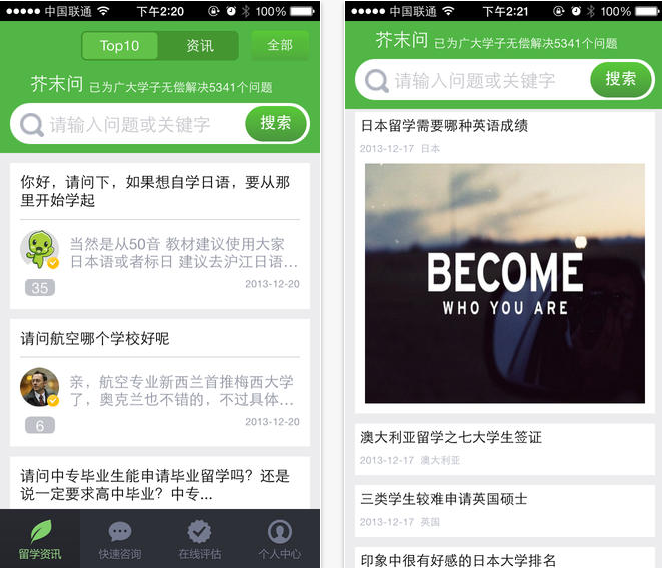 留学资讯: 基于不同留学意向,自定义选择留学信息类别,接收个性化留学新闻。