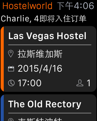 旅舍世界Apple Watch版,是您最佳的旅行助手,当您使用iPhone登录旅舍世界之后,以后不再需要掏出手机,可以直接在Apple Watch上查看你的订单详情,包括酒店的地理位置、联系方式、入住时间等。同时当你到了入住时间之后,Apple Watch会智能提醒,确保您行程更加方便。