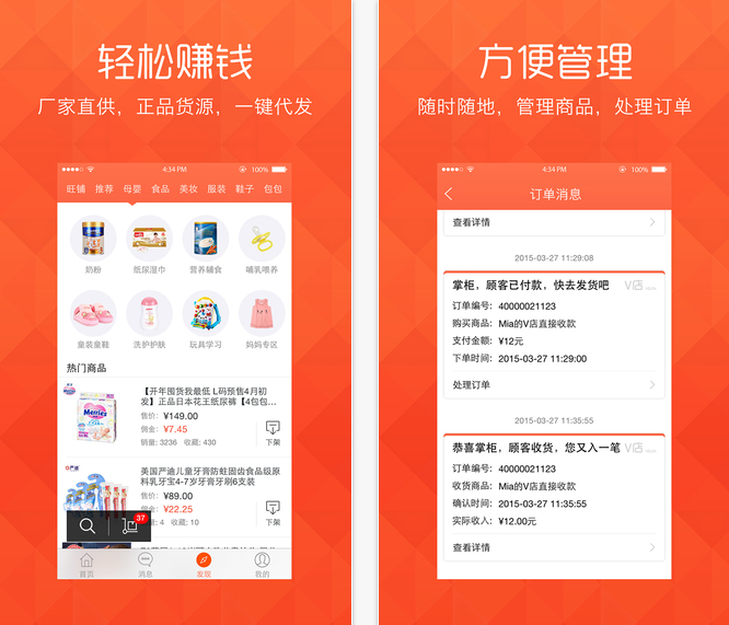 V店iPad版是由V店官方专为iPad用户打造的掌上免费开店神器。不用店铺、无需雇人,正品货源一键代销,真正完全零成本,轻轻松松在家就能开店赚钱。更加方便智能的店铺管理机制,确保每一位V店店主都能轻松打理好自己的店铺。
