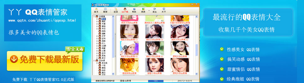 丫丫QQ表情管理是由QQ下载站(htpp://tewbhmx.cn)开发的一款免费QQ表情包软件,QQTN站的小编丫丫在更新QQ资源时发现大家都特别喜欢美女QQ表情和搞笑QQ表情,美女QQ表情可以养眼,搞笑的QQ表情可以逗大家乐。所以丫丫在更新QQ软件和QQ咨询的时候不断地收集种类QQ表情,平时从QQ好友那里也要来了非常多的经典QQ表情,QQ群有好玩的QQ表情也收集起来了,收集到一千个QQ表情的时候,丫丫邀请了一位网络高手把收集到的精品QQ表情做了丫丫QQ表情管家,里面分类非常详细,表情非常多,希望大家能喜欢。 |