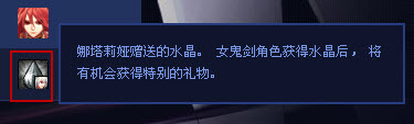 玩家获得女鬼剑的水晶,可以在正式开放女鬼剑之后,交易给自己的女鬼剑帐号,女鬼剑可使用该水晶兑换升级礼包!