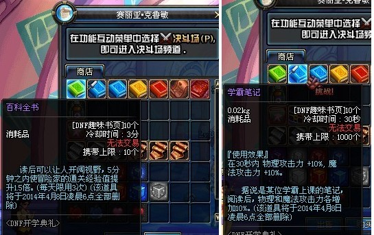 DNF体验服昨日更新通关地下城根据评分即获得DNF趣味书页,集齐一定数量的书页可在赛利亚处兑换所需要的书籍。国服将在3月11日正式更新。具体内容如下图: