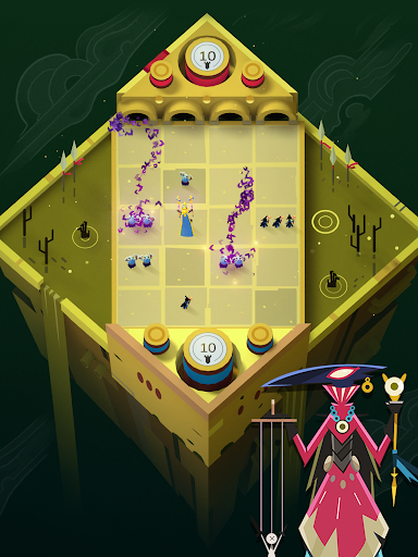 2. 玩法上相信大家都有体验,战斗比较像是回合制的《皇室战争》,游戏整体体验有些类似塔防,双方部队每回合前进一格,最终到达地图对面的敌方主城并造成伤害,互相碰撞的部队会彼此抵消数值,通常情况下生命值=攻击力,部分部队有特殊效果,类似炉石的战吼,亡语一类的。