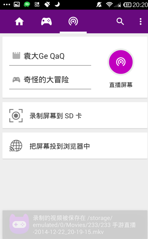 -高清直播:一键直播自己的手游精彩镜头;一键分享?都弱爆了!