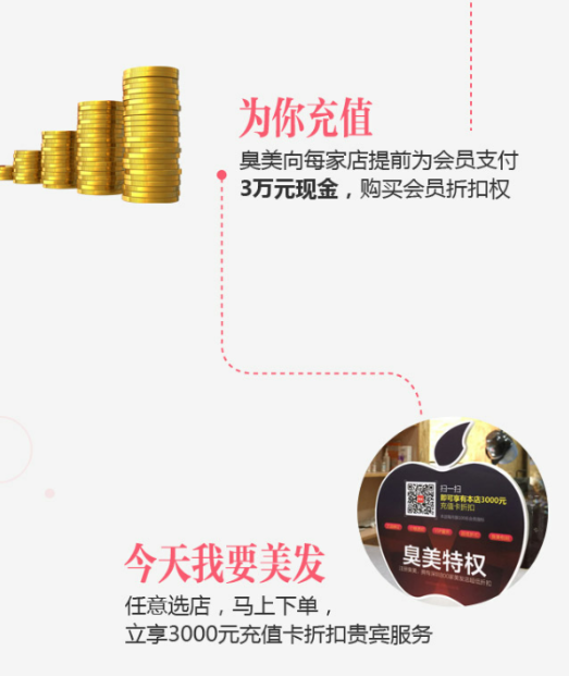 为你充值,臭美向每家店提前为会员支付3万元现金,购买会员折扣权