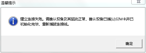 请确认设备及其驱动正常、确认设备已插(U)SIM卡并已初始化完毕、重新插拔连接线。