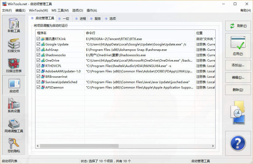 该工具允许您监视,添加,删除,启用和/或禁用各个启动项。还可以调整在操作系统的加载过程初始化应用程序。