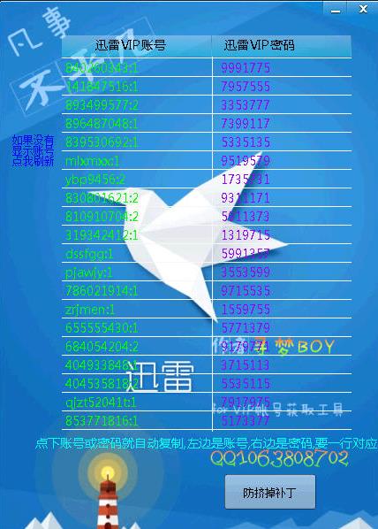 迅雷会员账号分享器可以免费提供大量真实的迅雷会员账号,有些迅雷会员账号发布后后在一定的时间失效,我们也不必担心,因为VIP迅雷账号资源广,一般那些迅雷会员账号分享器会每隔一段时间更新一批,所以尽可放心无忧