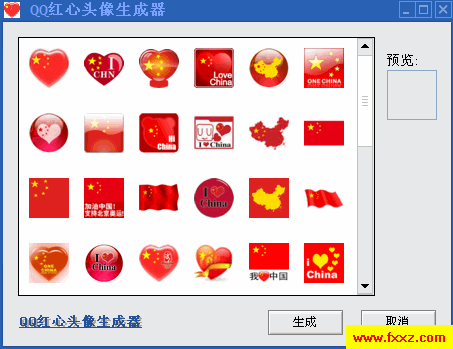 QQ爱国红心头像生成器,包含50多个红心、红旗头像