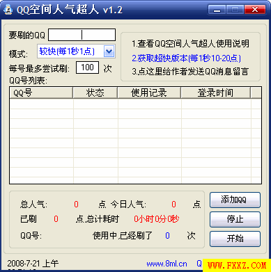较快模式每秒能给你的QQ空间带来一个人气值,
