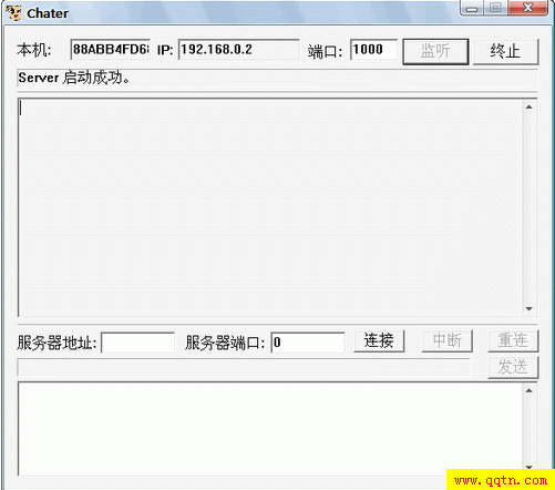 一个网络聊天程序,任何一台机器均可成为服务器,其它想聊天的机器往它那里联即可。程序本身既可当Server又可当Client